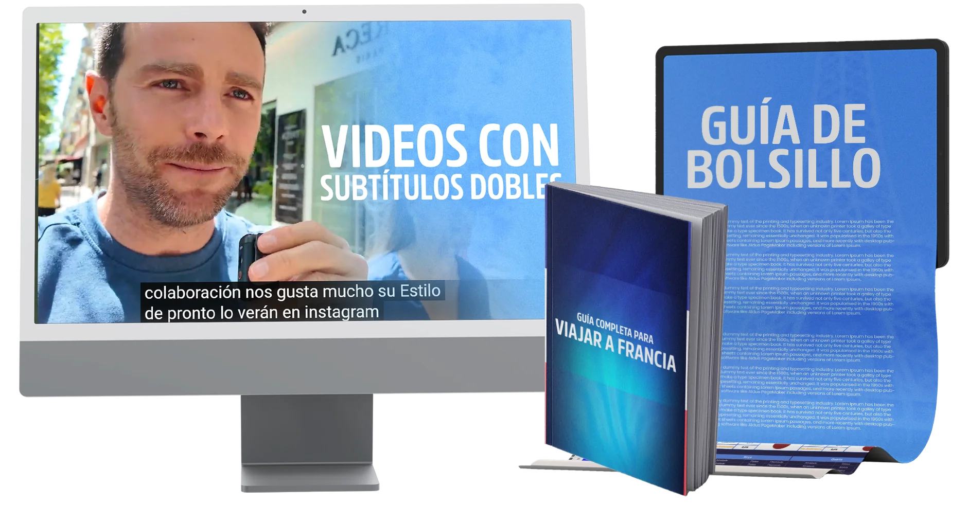 Vas a tener acceso a las palabras exactas, las frases precisas y los videos reales grabados en Francia que te van a preparar para comunicarte con confianza total en tu viaje.